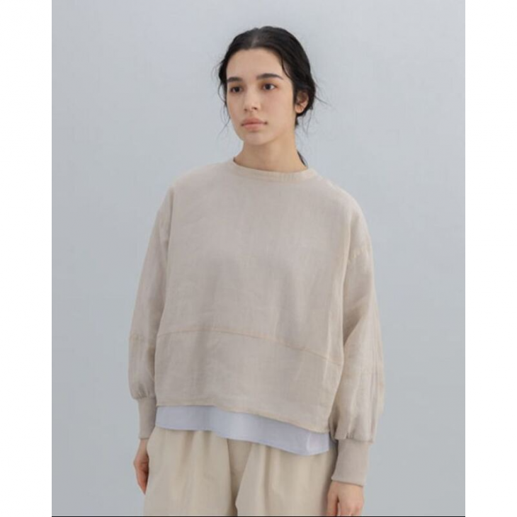 麻と綿素材のレイヤードが上品なシアーブラウス。