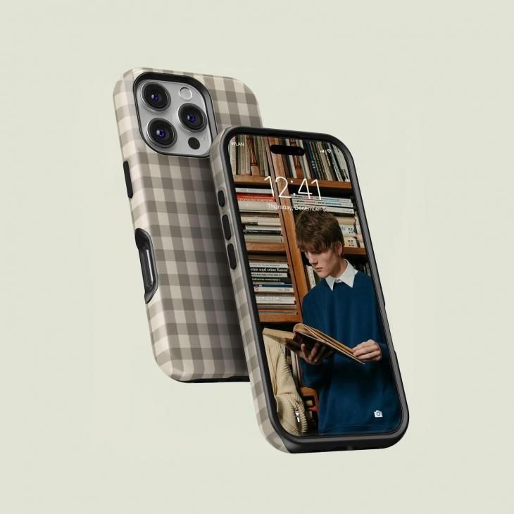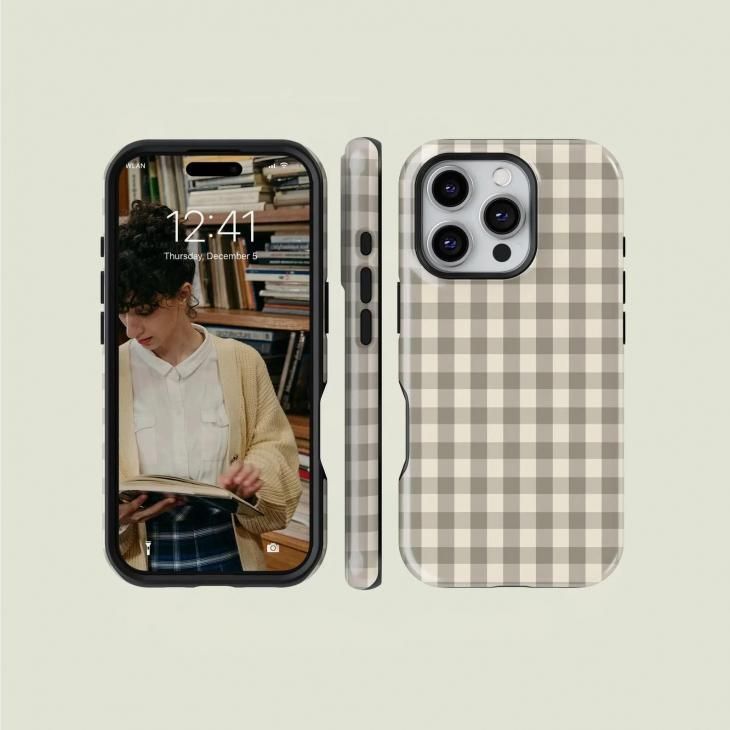 CASE-FACE | Mini Gingham Taupe & Cream MagSafe iPhoneケース