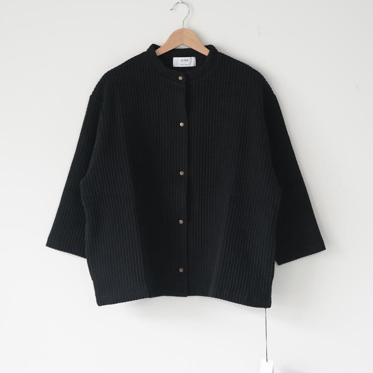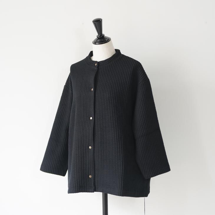 utilite (ユティリテ) | Stretch Quilt ストライプ柄 スタンドカラージャケット (ブラック) | キルトジャガード