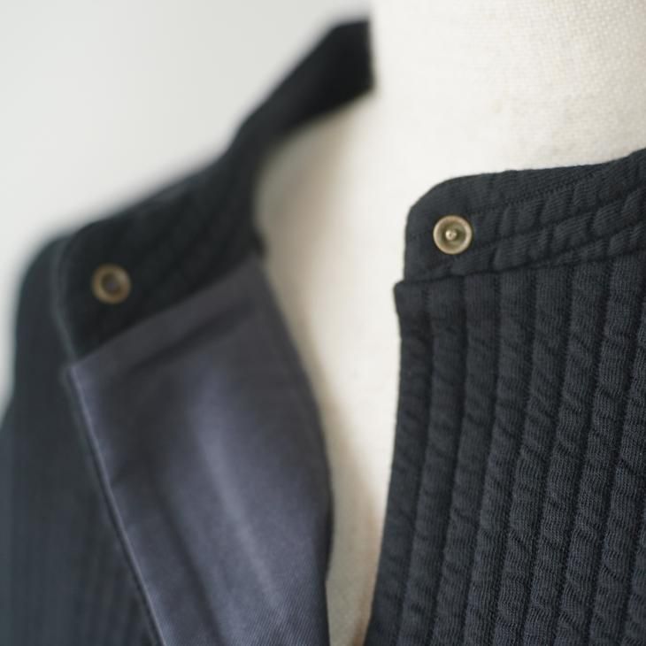ストライプ柄の綺麗な凹凸で高級感があり、スナップボタンのスムーズな開閉でコーディネイトをアレンジできます。