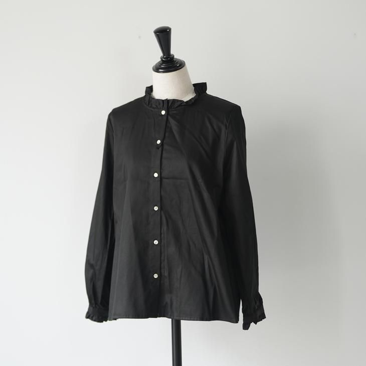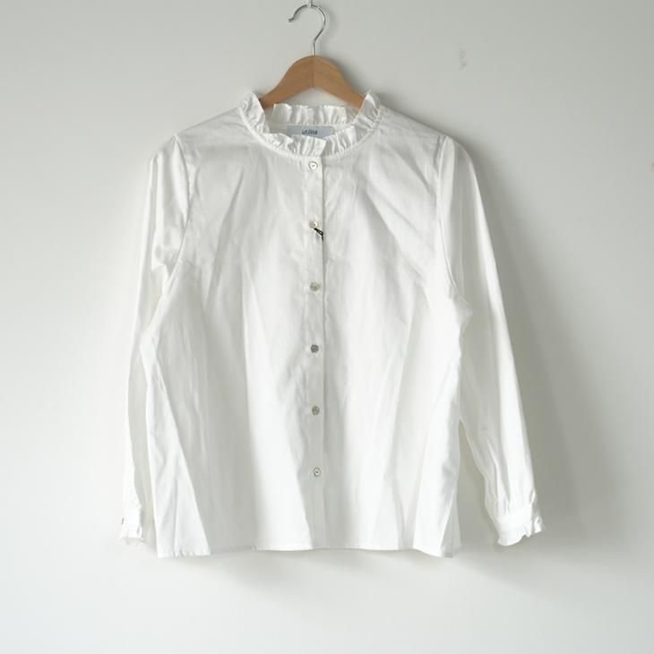 utilite (ユティリテ) | フリルカラーブラウス (シロ/クロ) | トップス ブラウス サテンシルクソフト