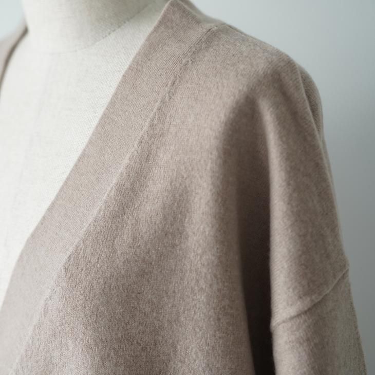 utiliteでもおなじみのワンボタンで深めのVネックのカーディガン。身幅をゆったりとっていて、メリノウールのチクチクしない着心地でリラックスして着用いただけます。