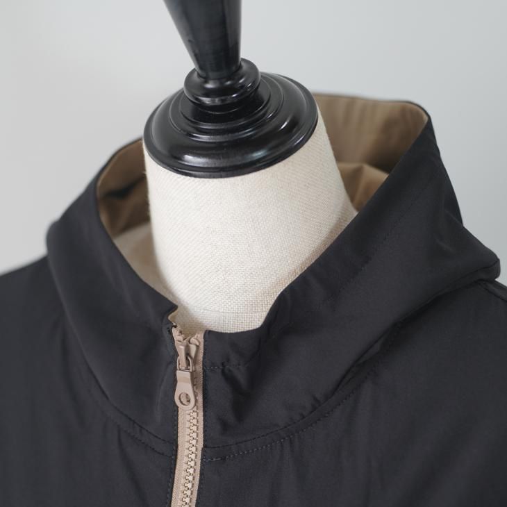 フード内側、zipライン、裾、袖内側が配色となったナイロンジャケット。 薄手で軽量なナイロン素材なので、寒い日にバッグに忍ばせ、いざという時に羽織っていただけます。