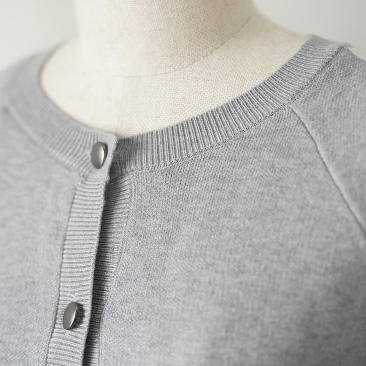 レーヨン、セルロース、ナイロンで繊細に編み立てられた程よい伸縮性があるすっきり見えするアイテムです。ボタンを閉じても、開いたままでも雰囲気が出ます。