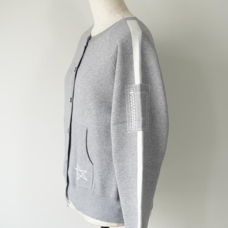 MK・b (エムケービー) | 編立ヤーン ラグランカーディガン (グレーxオフ) size 40 | ジャケット ブルゾン ニット