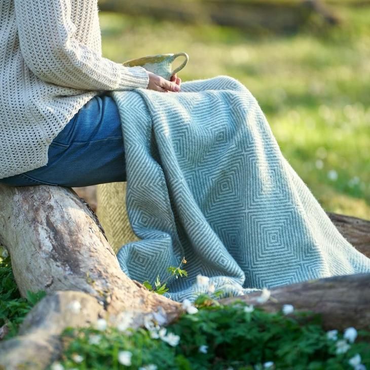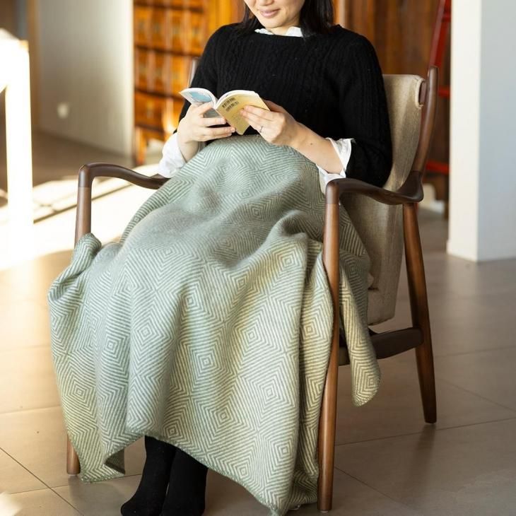 KLIPPAN (クリッパン) | リサイクルウール ハーフスロー グースアイ MIDI (グリーン)ブランケット