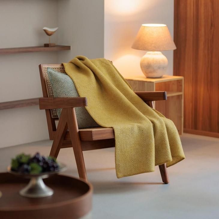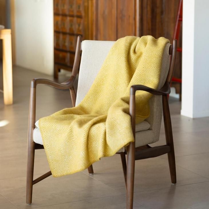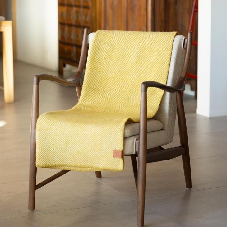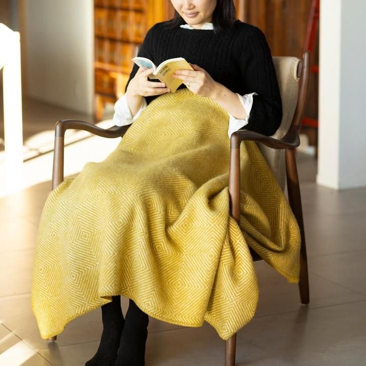 KLIPPAN (クリッパン) | リサイクルウール ハーフスロー グースアイ MIDI (イエロー)ブランケット