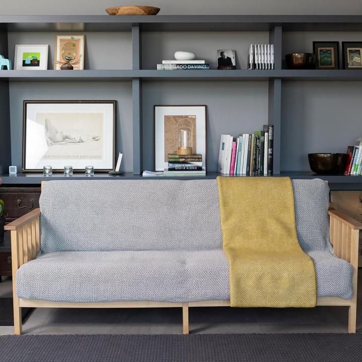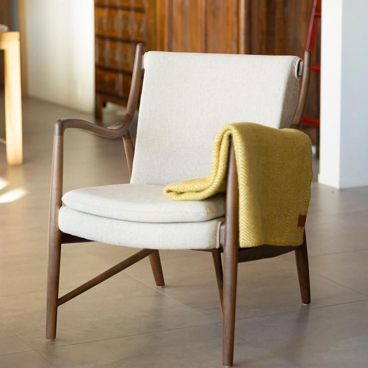 スローは、ブランケットより空気をたくさん含んでふわりと織られているため、より軽やか。ハーフサイズのスローは、スウェーデン本国では“Knee Throw”と呼ばれ、より手軽に使えるひざ掛けとして愛用されています。ブランケットより薄くて軽いので、ダイニングやリビング、車の中などどこにでも置いてさっと使えます。 シンプルなベーシックインテリアを、飾らずさらりと使いこなす北欧の人々。そんな「シンプルで心地いい暮らし」に共感する皆さまにお届けしたい一枚です。