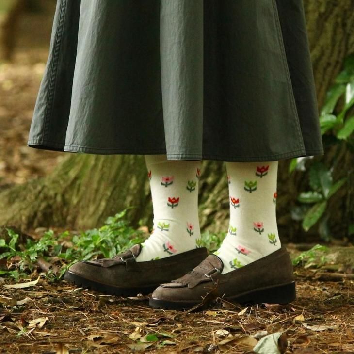 ロングスカートやワイドパンツからちらっと見えるノルディックテイストの靴下で、おしゃれを格上げしましょう。
