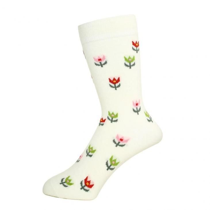 BENGT & LOTTA (ベングト&ロッタ) | チューリップ (ホワイト) レディースソックス | 靴下 かわいい 北欧 花柄