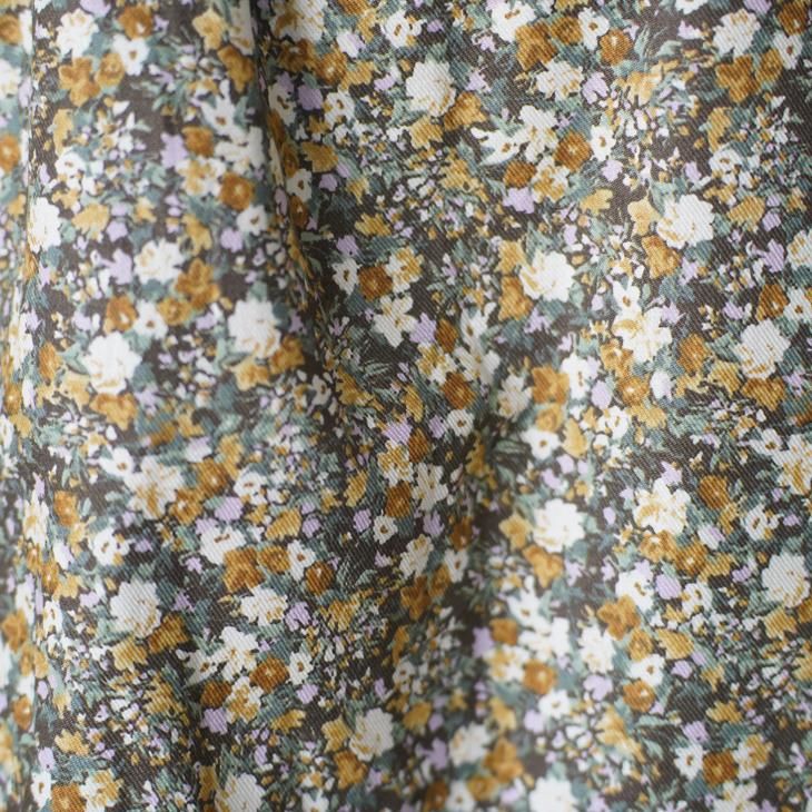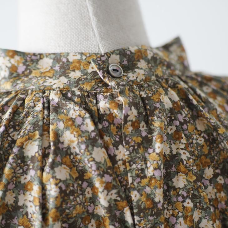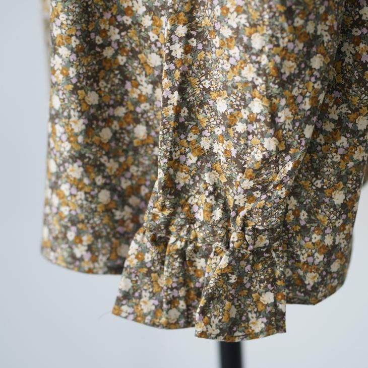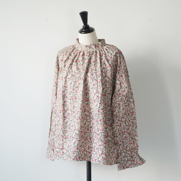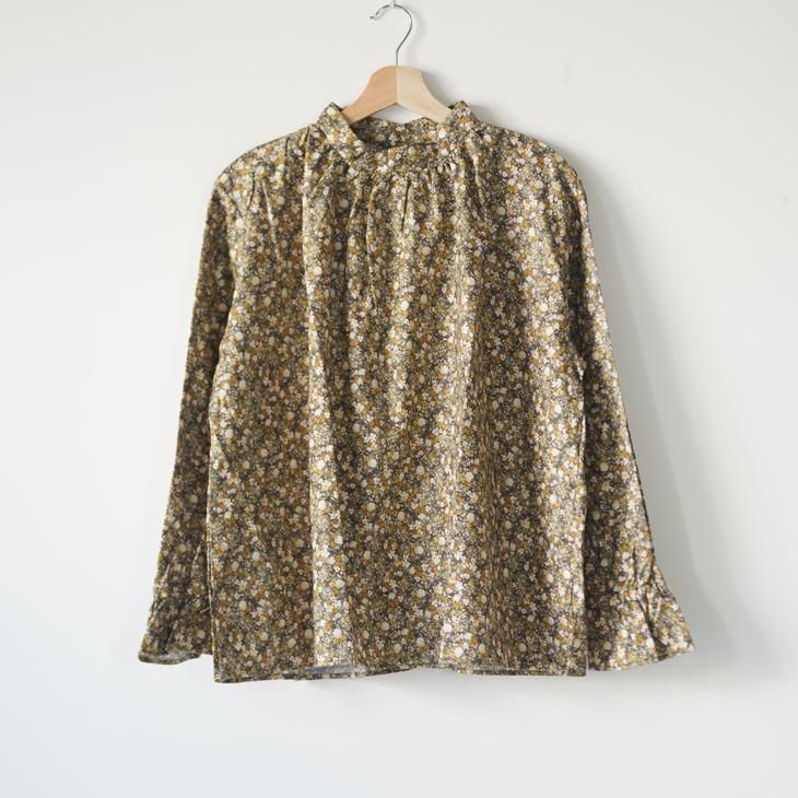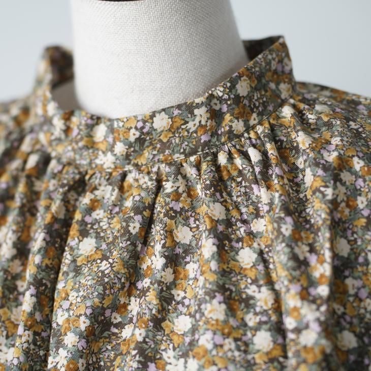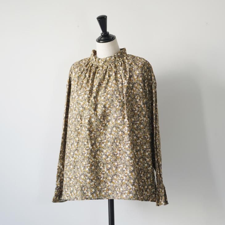 クラシカルな雰囲気の小花柄のギャザーブラウス。