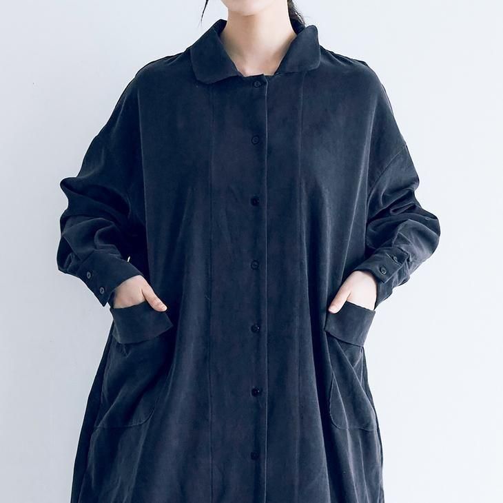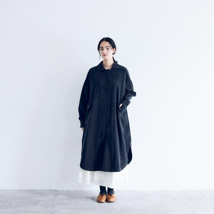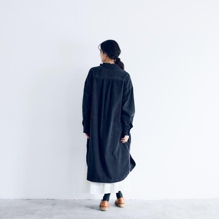 MAGALI | 天日干しコットンコーデュロイ・シャツドレス (チャコール) | マガリ ドレス ワンピース