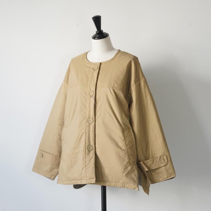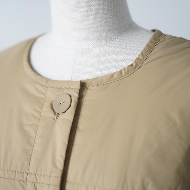 ノーカラーのスッキリとしたデザインですので、いつもの着こなしにコツなく馴染むベーシックなデザイン。軽くて暖かいので、毎日を快適にしてくれる万能アウターです。