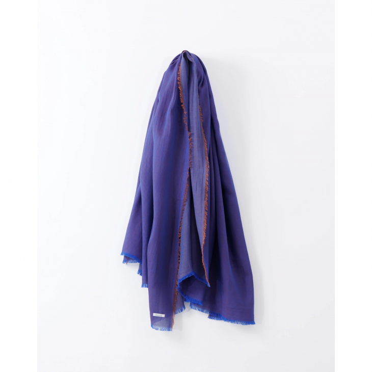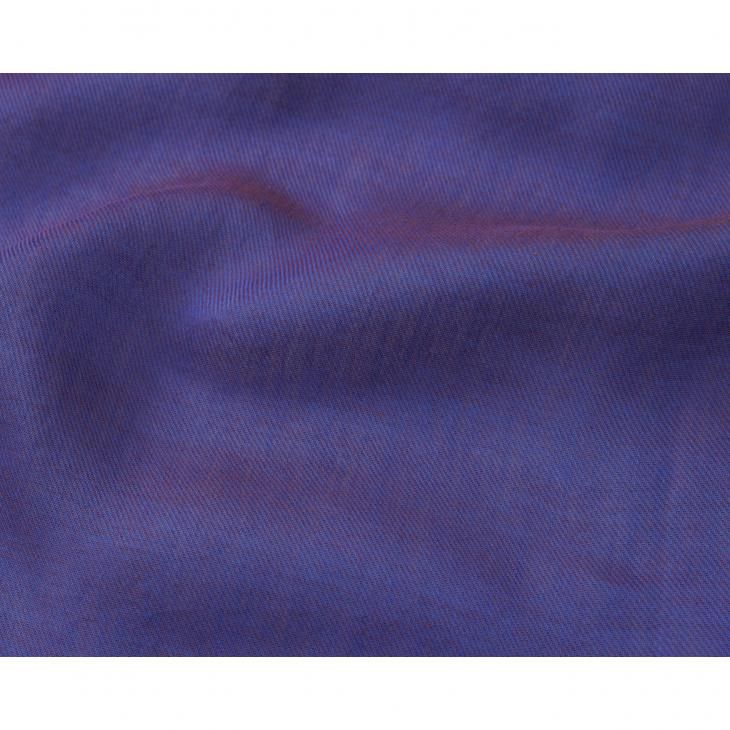 糸の色の重なりが美しいコットンストール。しっとりとした肌触りのダブルフェイスが魅力です。緯糸に赤めのブラウンとベージュを組み合わせることで、深みのあるパープルのような独特な色合いに。上品なコットンは普段使いにも、少し特別な日のコーディネートにも大変重宝します。洗いざらしでカジュアルな表情に、アイロンをかけると少しフォーマルな表情にも変わります。生活のシーンに合わせてご使用ください。玉虫色のような光沢感のあるカラーで、パーティーなど華やかなシーンにもおすすめです。