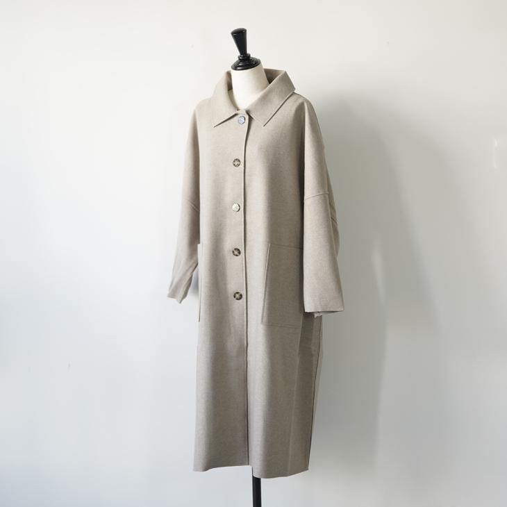 軽くしなやかさのあるウールライクなポリエステルレーヨンのダブルフェイス生地をたっぷりと使いステンカラーのロングコートを作りました。