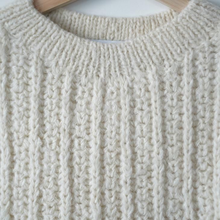 アルパカは非常に毛が細かく、丈夫な毛になります。アルパカだけでセーターを編むとかなり重いため、ウールなどと引き揃えると軽く、柔らかいセーターになります。