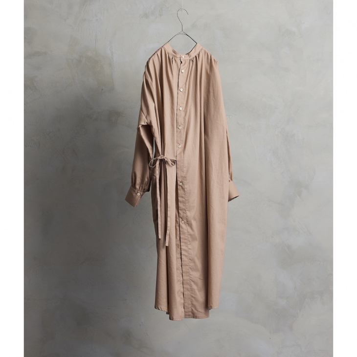 表面が滑らかで、軽く柔らかな肌触りの良い風合いが特徴的なローン生地。そのため季節によって外側に着たり、内側にインナーとして使用したり、重ね着を楽しめる素材です。適度な張りとさらりとした質感で、取扱いもしやすい素材です。