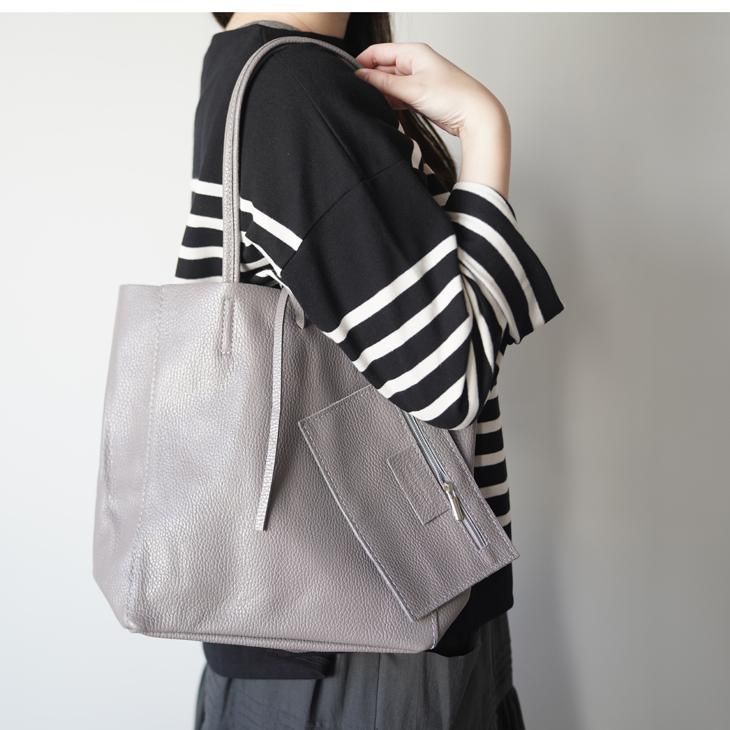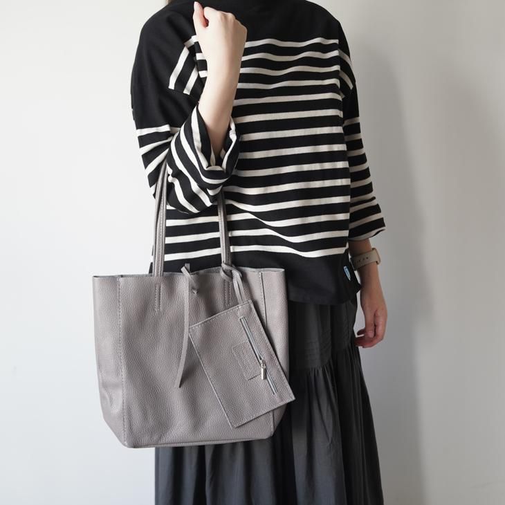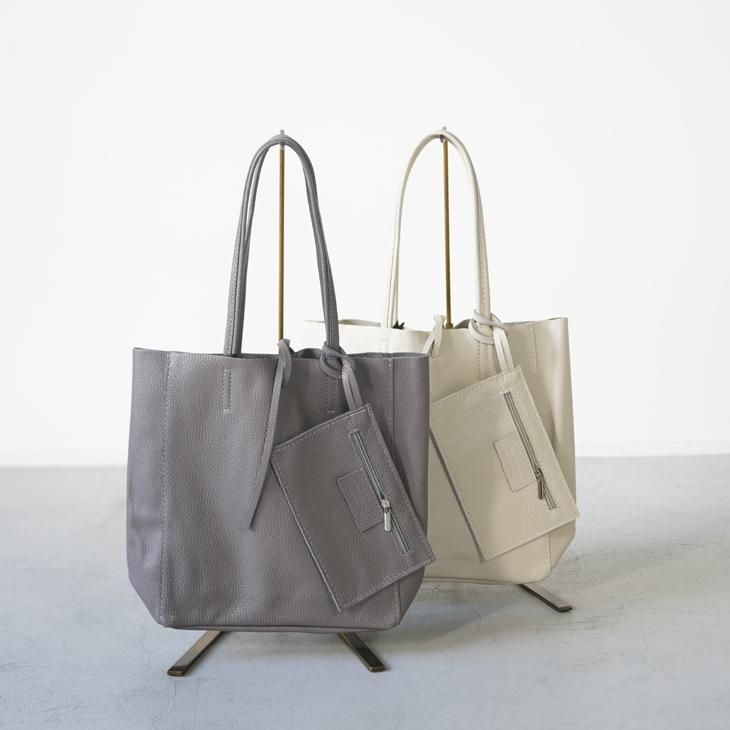 MARLON FIRENZE (マーロンフィレンツェ) | Medium Tote Bag with Pouch (light beige/grey) | ショルダーバッグ ハンドバッグ