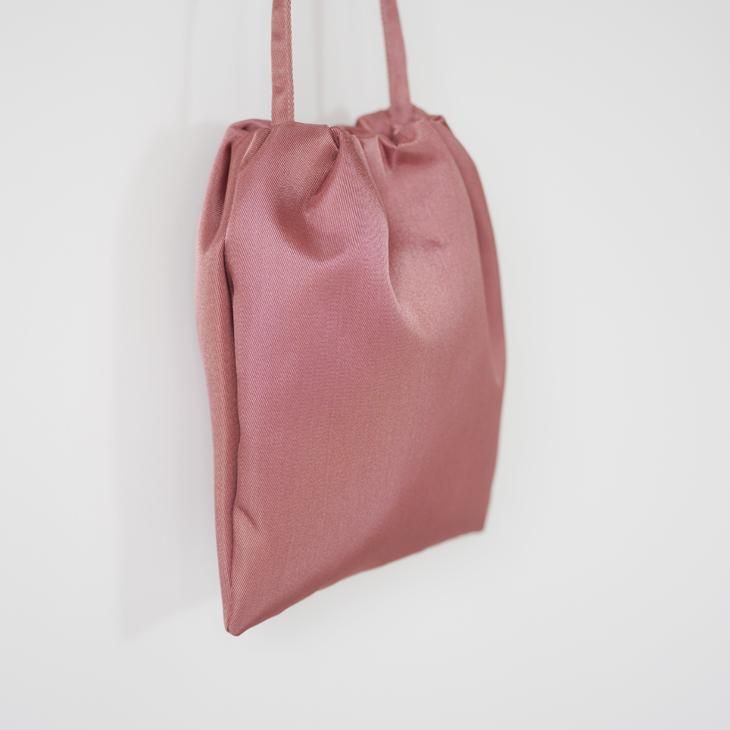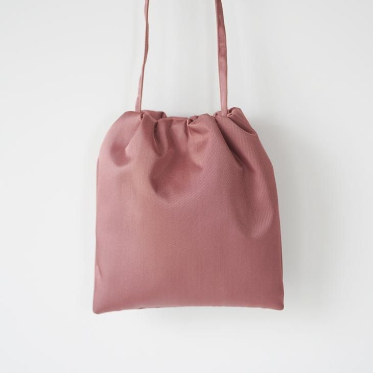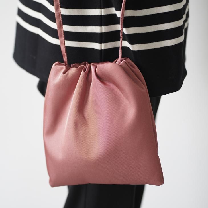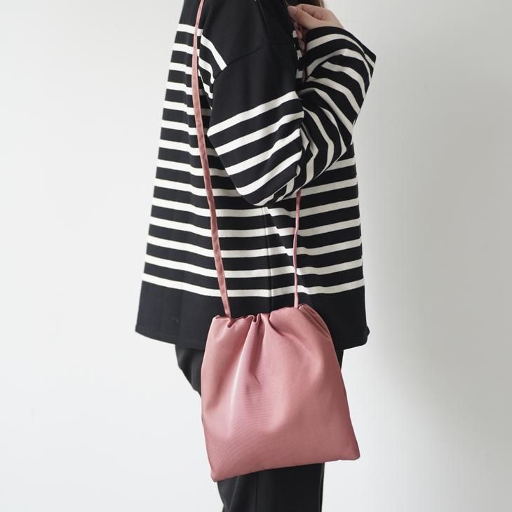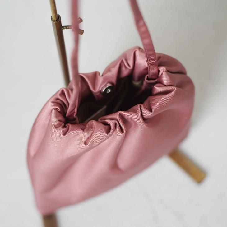 ウレタンをボンディングし、ふんわり感を出した艶やかなナイロンツイルで作った小ぶりなショルダーバッグ。