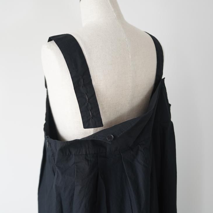 丈夫さと、しなやかで肌触りの良い生地で仕立てたサロペットパンツ。ゆったりとしたシルエットの中に、計算されたタックデザインが縦のラインを強調し、すっきりとした印象に仕上げています。インナー次第で様々な表情を楽しんでいただけます。 肩紐ボタンで3段階で長さを調整可能。