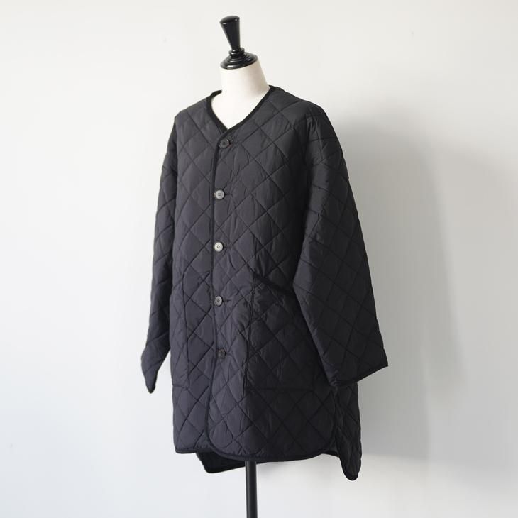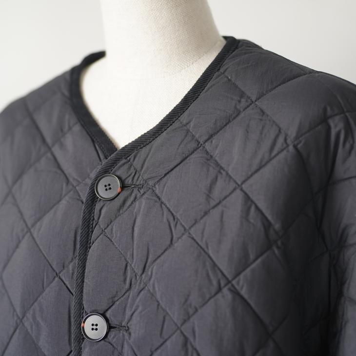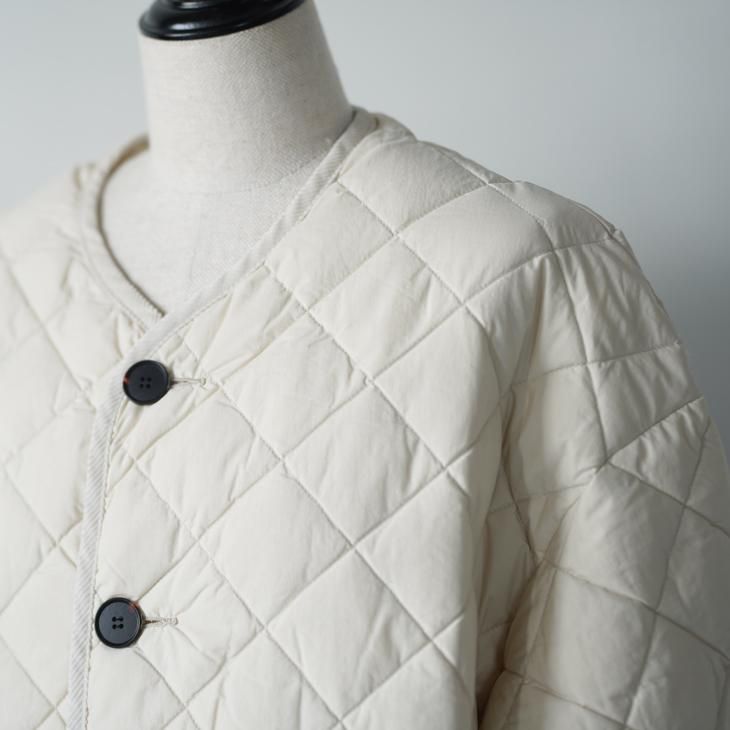 GYMPHLEX | NYM QUILT DOWN COLLARLESS COAT (oyster/black) size 14 | ジムフレックス キルティング ダウン