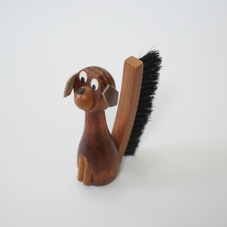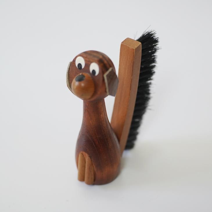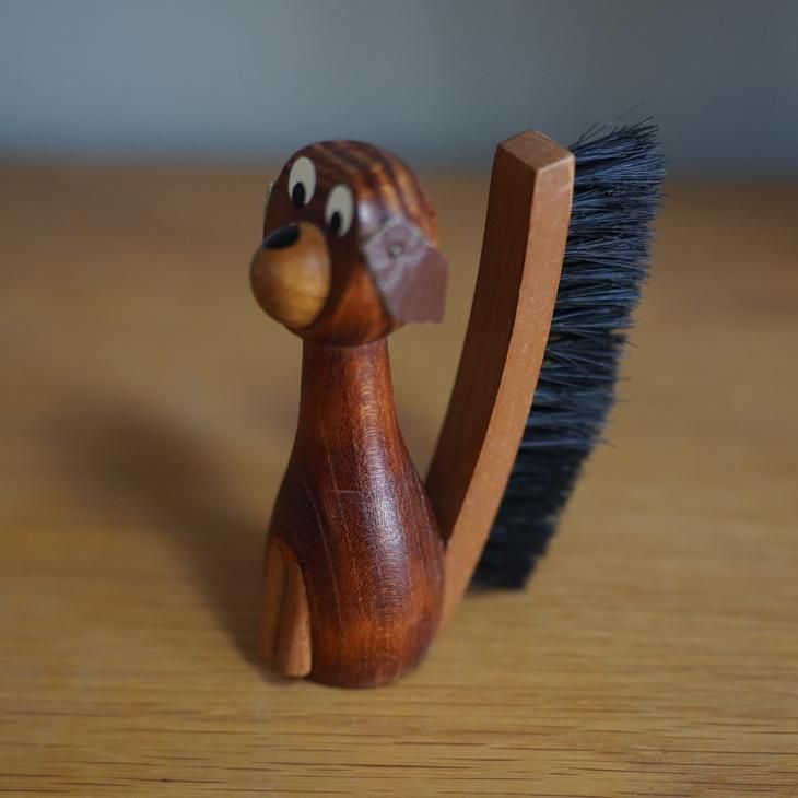 1960年代から1970年代頃にデンマークで犬用ブラシとして製造されたチーク材の置物。自立するので、置物としても可愛らしい犬のオブジェです。