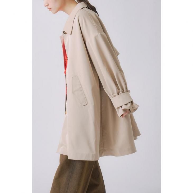 バックにはタックを施したレイヤードパーツを入れ、動きのあるバックスタイルに。 袖口はギャザーで絞ったようなフォルムが特徴的です。