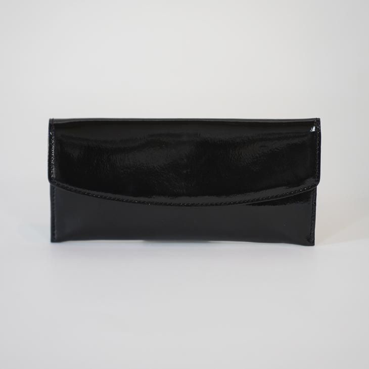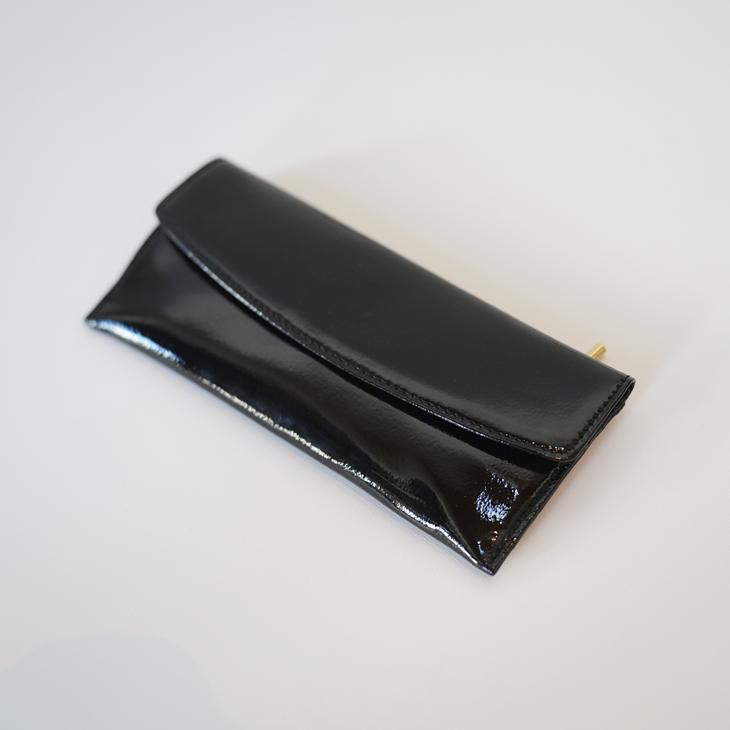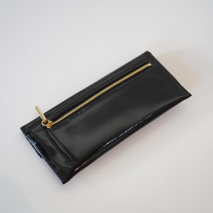 革の表面に細かいシボを施た後エナメル加工をし、透き通った立体感のある表情が特徴のエナメルレザーを使用したロングウォレット。