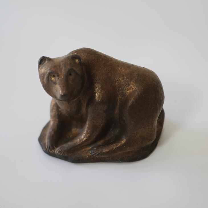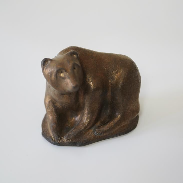 きょとんとした表情とブロンズの輝きが高級感のあるベア彫刻。