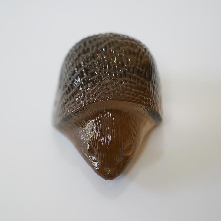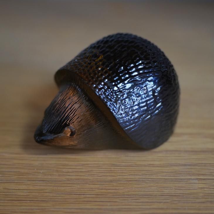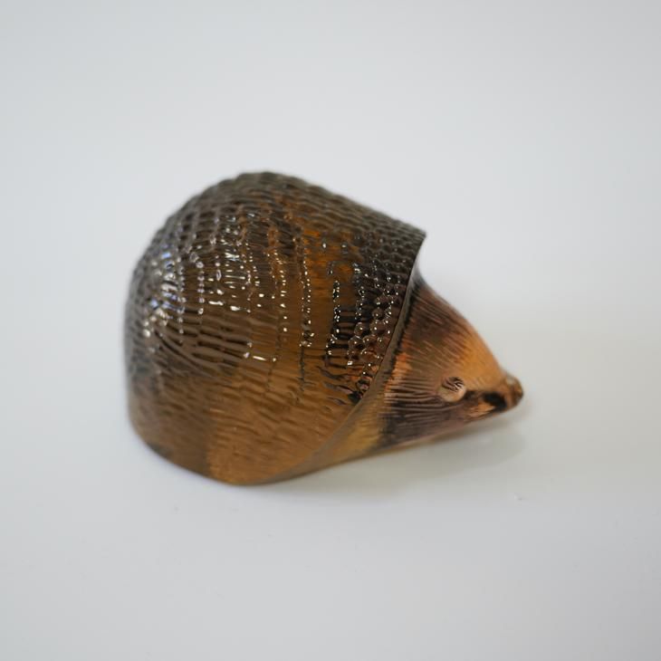 とても精緻に作られたフィギュアでスモーキーな琥珀色のクリスタルで作られたこの彫刻は見事にハリネズミの本質を捉えた、芸術センスが光る作品です。