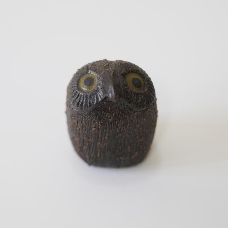1970年代スウェーデンで手作りされた、台座に「Lasses」と刻印のあるアースカラーのフクロウ。大きな目とわずかに湾曲したくちばしが魅力的な様式化されたフォルムが特徴です。
