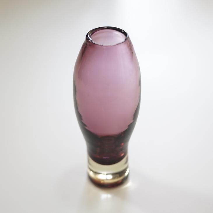1960年代から1970年代に、フィンランドのリーヒマエンラシ社で手がけた曲線のフォルムが美しいパープルのフラワーベース。