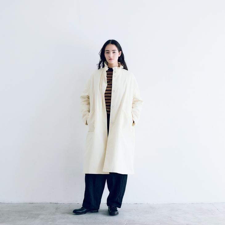 コートを脱いだ時にも美しく見えるように裏地はアイボリー色のコットンで仕立てています。 しっとりとシルクのような肌あたりなので、気持ちよく羽織っていただけます