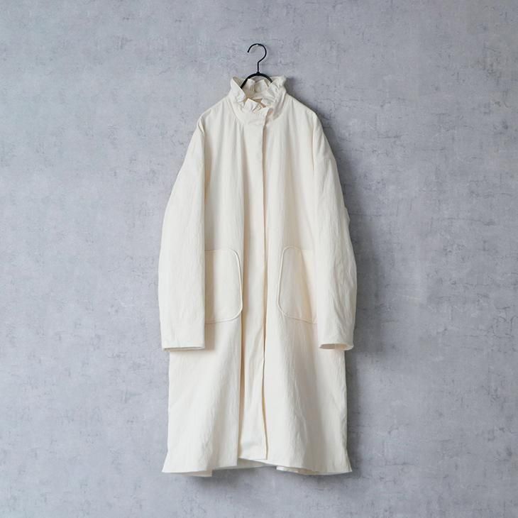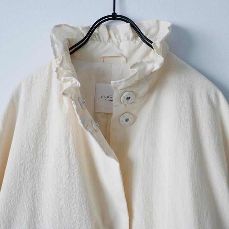 MAGALI | オールドコットンナイロンリネン・フリルカラーパディットコート (アイボリー) | マガリ アウター