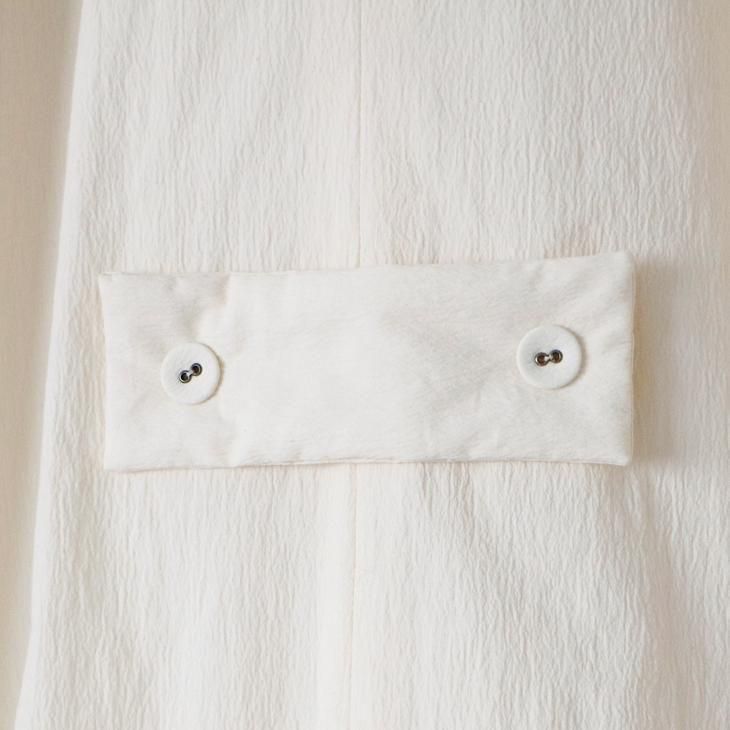 素材   表地:コットン49% ナイロン29% リネン20% ポリウレタン2% 裏地:コットン100% 付属:クルミスナップボタン