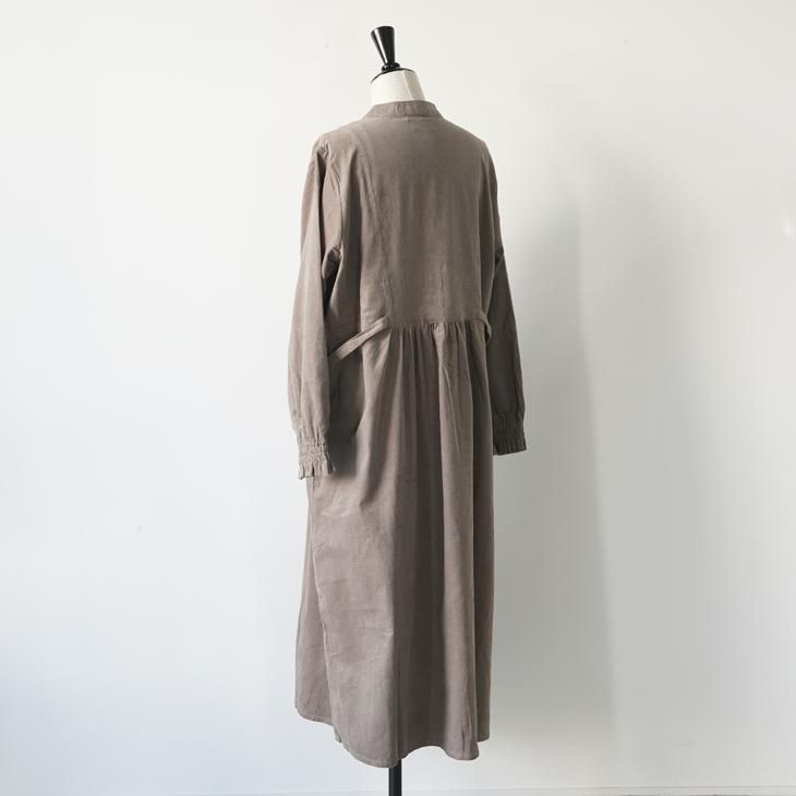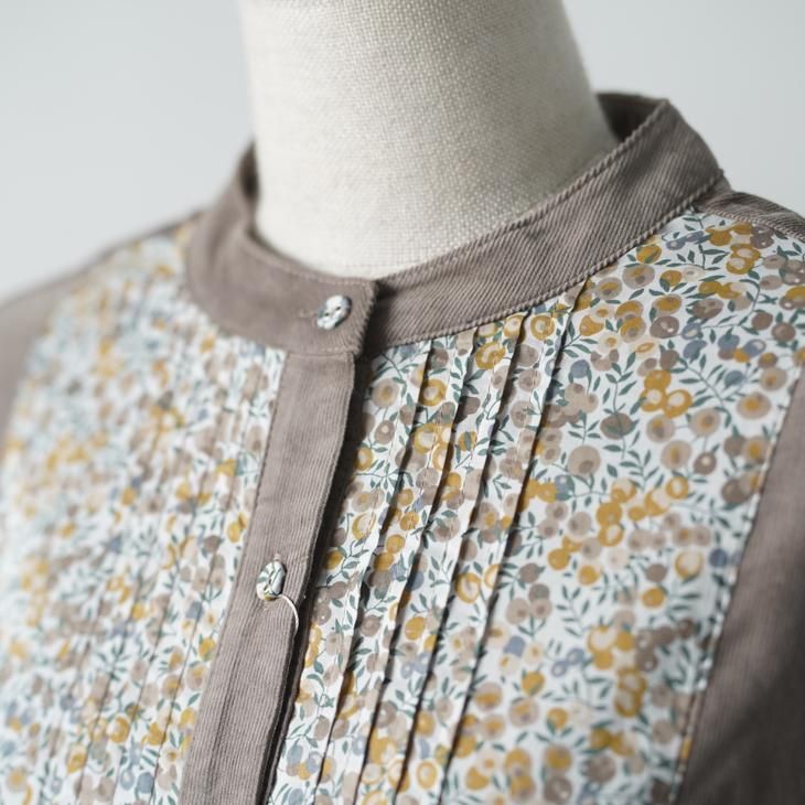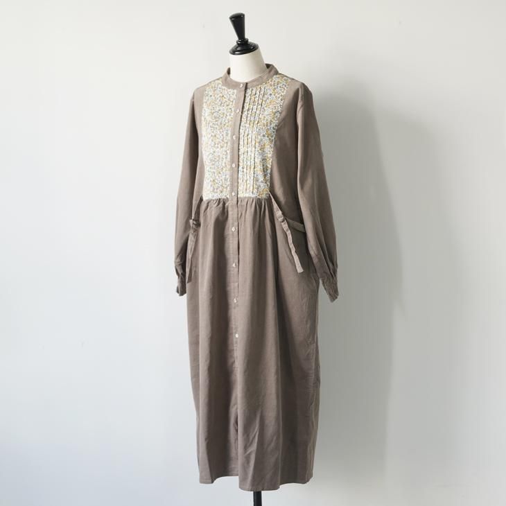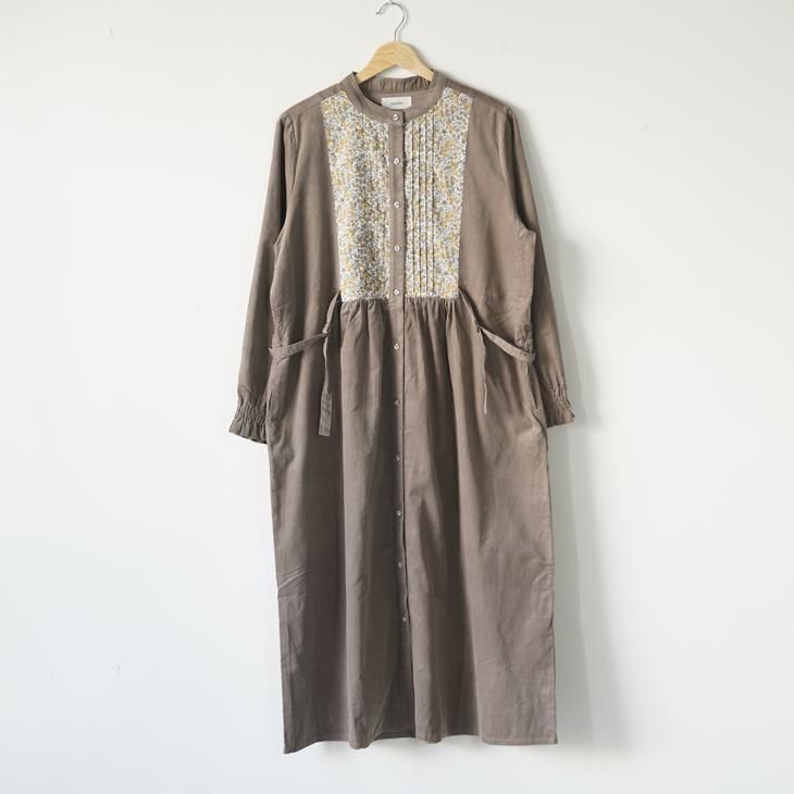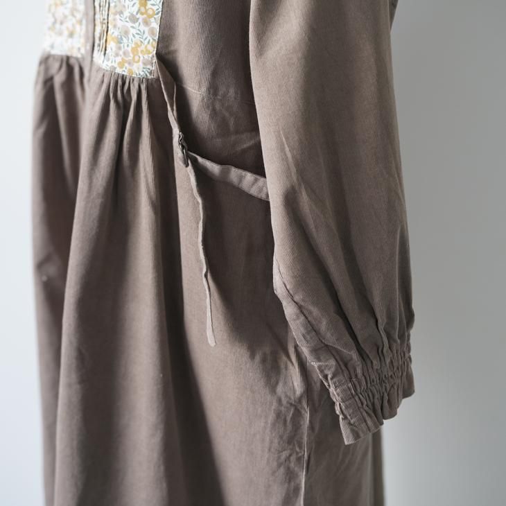 暖かみのある柔らかなコットンの細コールに、LIBERTYタナローンを合わせ華やかさをプラスしたワンピース。