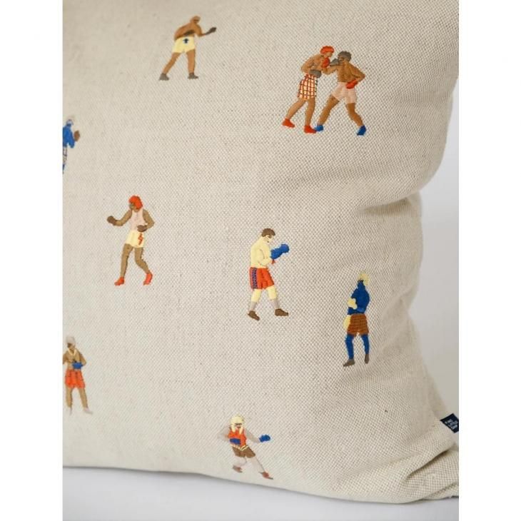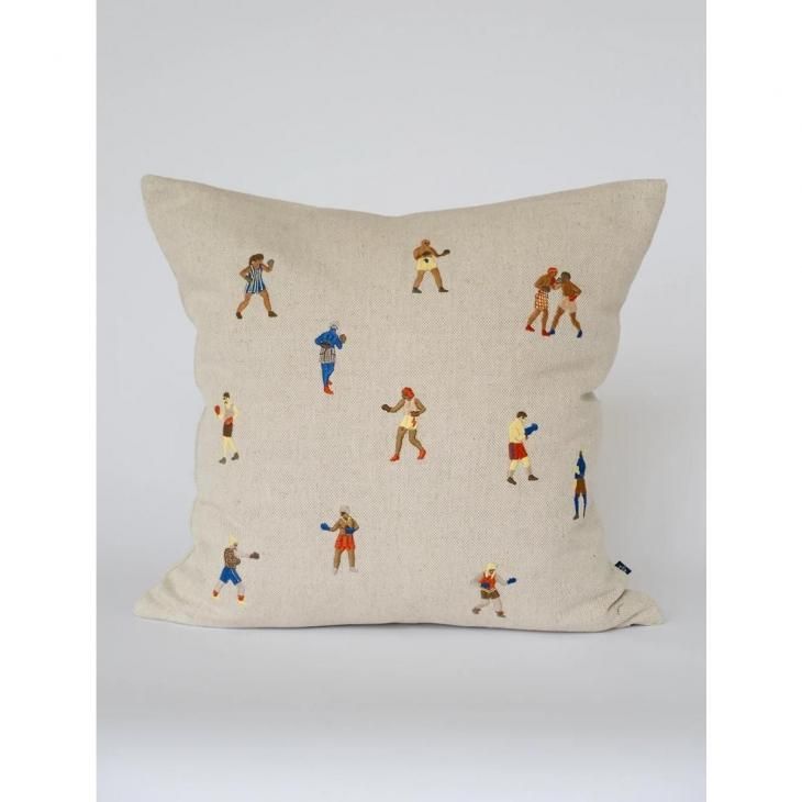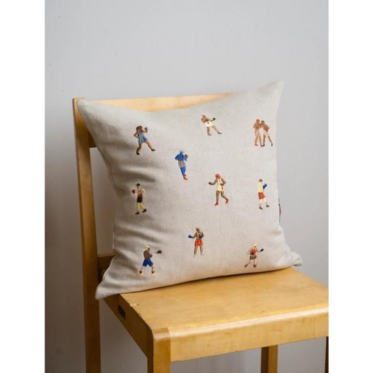 「SWIMMERS」「SKIERS」など人気のElisabeth Dunkerのシリーズに「BOXERS」が新登場。カラフルな色彩のボクサーパンツを履いた人物がスパーリングする可愛らしいクッションカバーです。