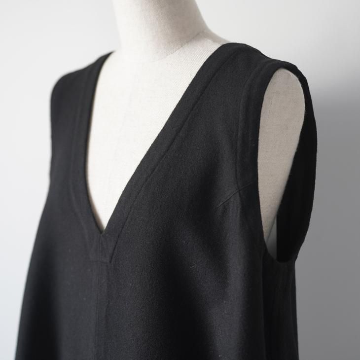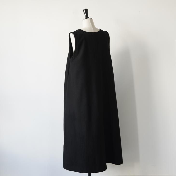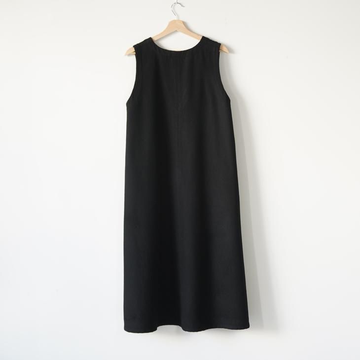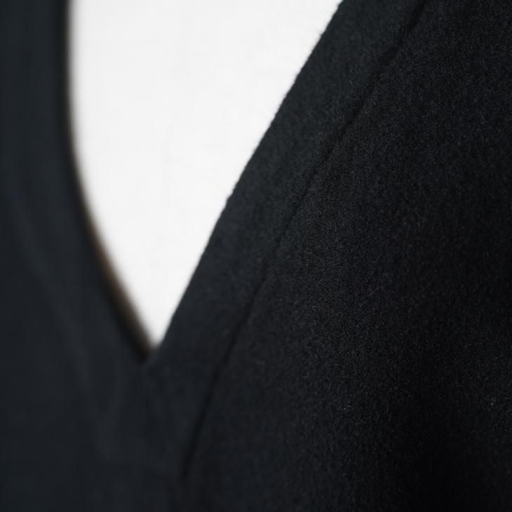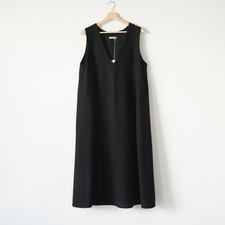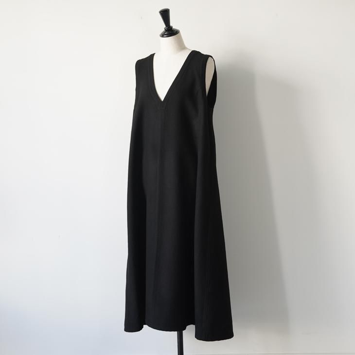 FACTORY (ファクトリー) | 綿ウール朱子織 Vネックワンピース (ブラック) | ドレス ワンピース 25AW