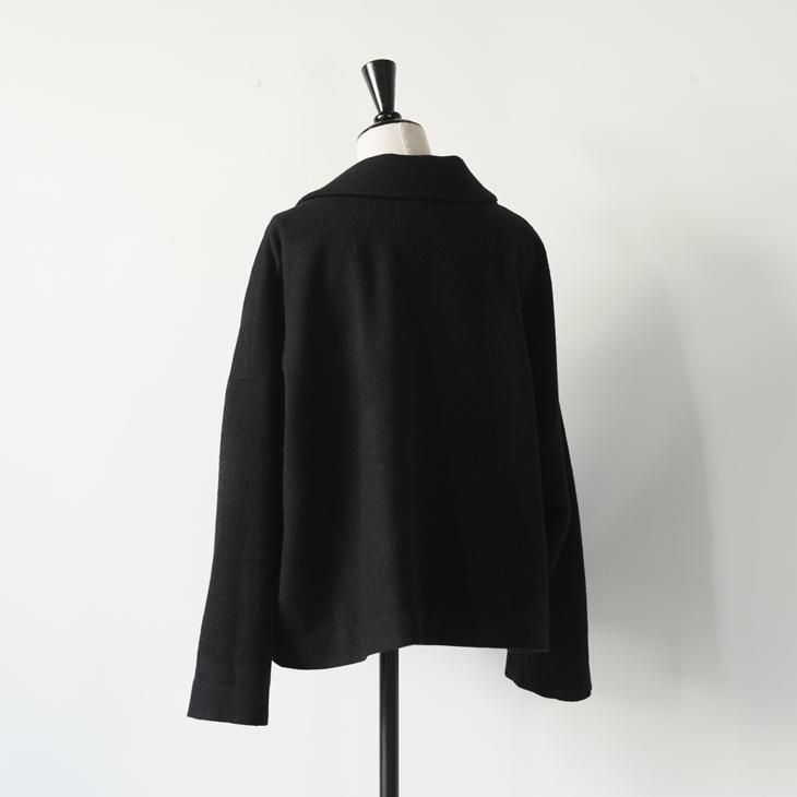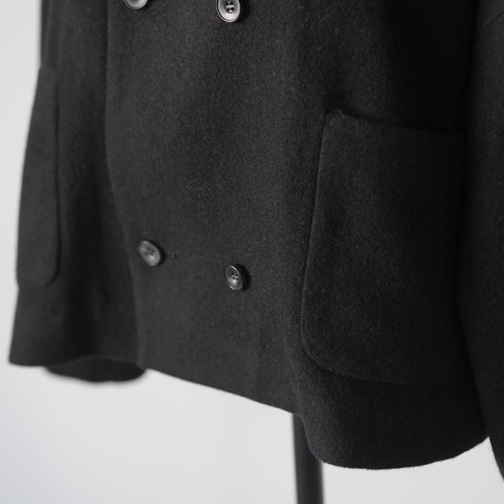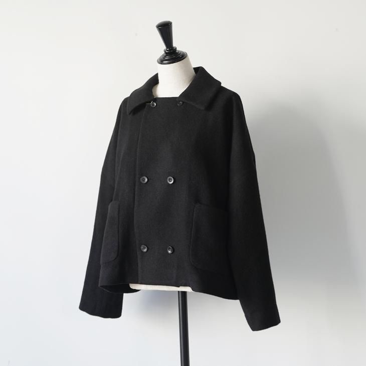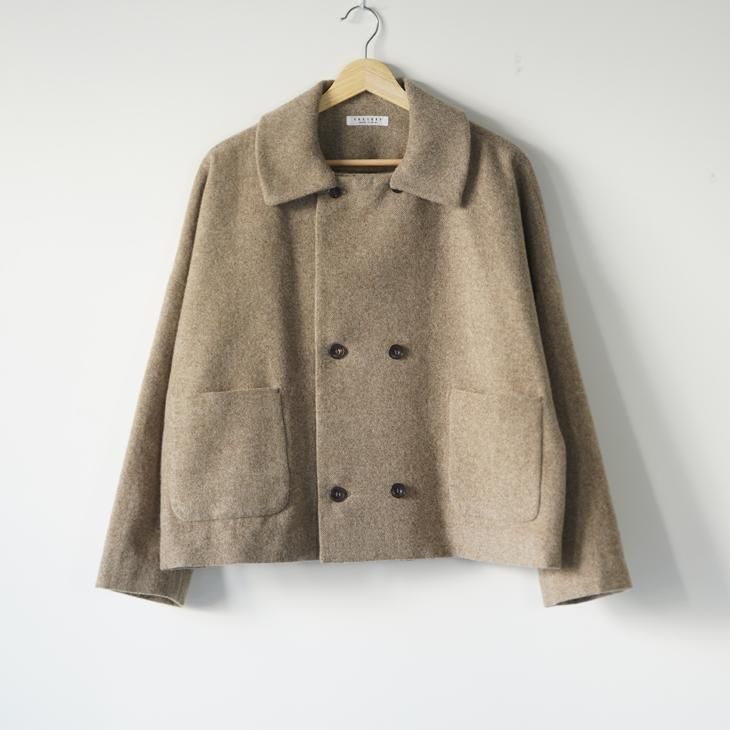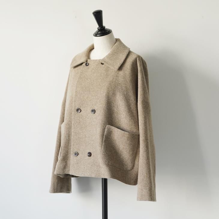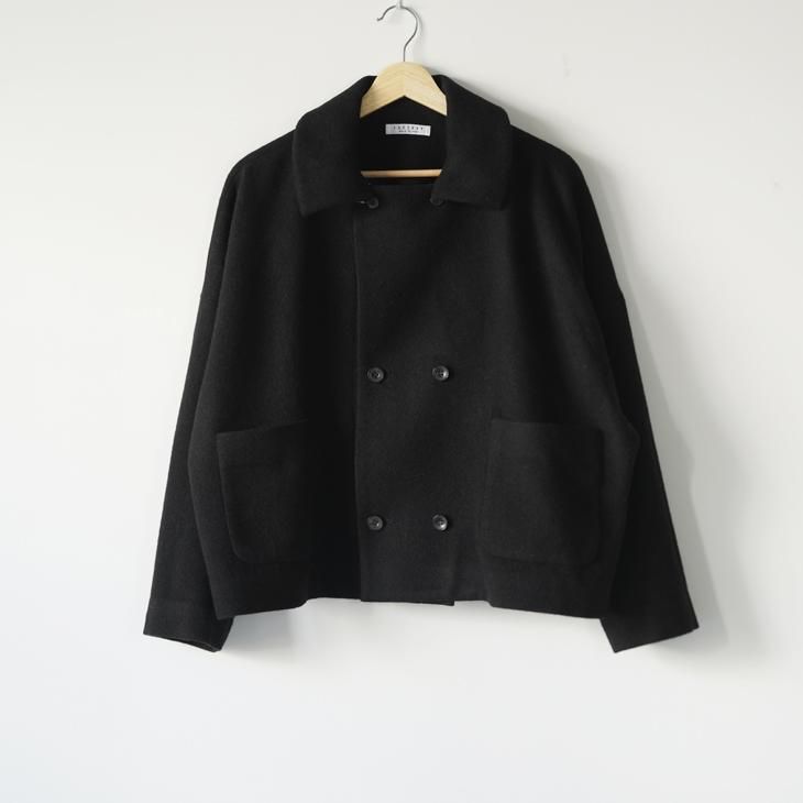 FACTORY定番のウールやぶれ織を使用したドルマン袖ショートコート。