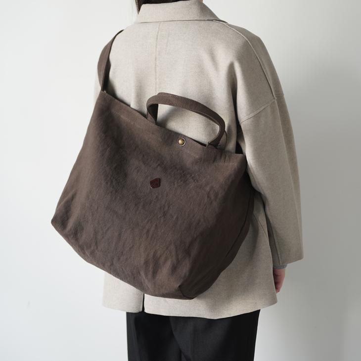 柔らかく軽いウォッシュドコットンジュート素材を使用した、 HASAシリーズの2WAYトートバッグ。