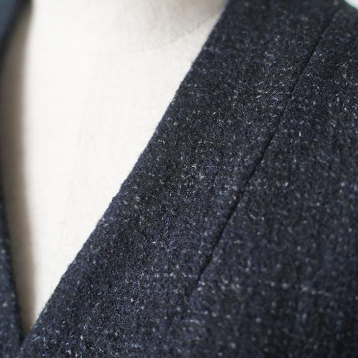 メランジ調の色の重なりが、奥行きと深みを出し、肉厚ながら軽く着心地も抜群のジャケットです。