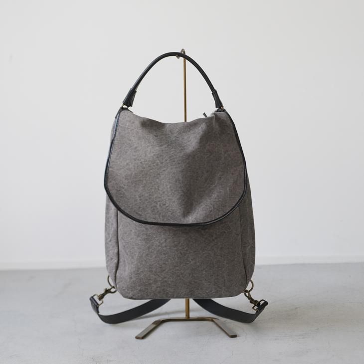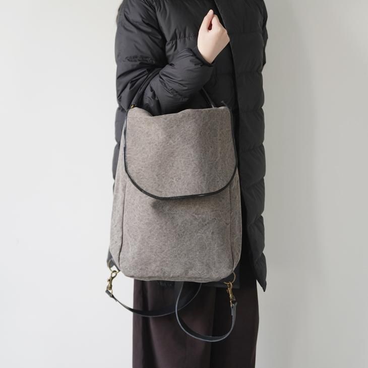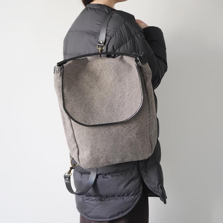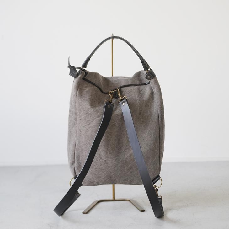 ストーンウォッシュならでは味わいのある素材でシックな存在感のあるバックパック。
