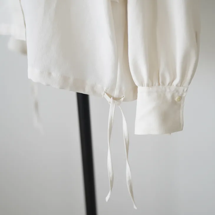 デザインはlelillお得意のフラップブラウスの進化系。熱がこもらないように前後のフラップは贅沢な分量を使っているので、立体的でエレガントなボリューム感を楽しめます。