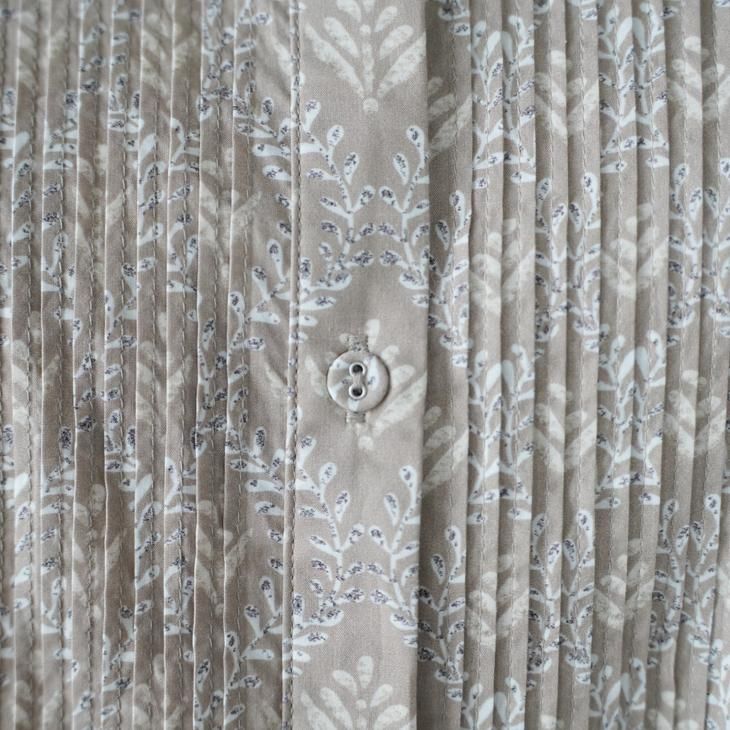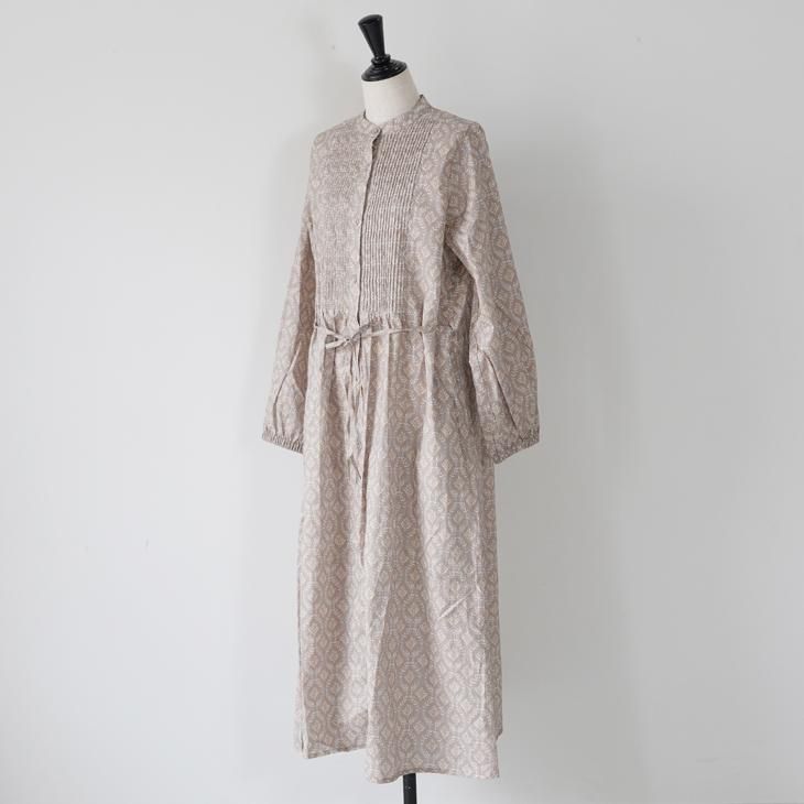 sosotto (ソソット) | ツタ柄細ピンタックウエストドロストOP (beige) | ワンピース ベージュ 長袖