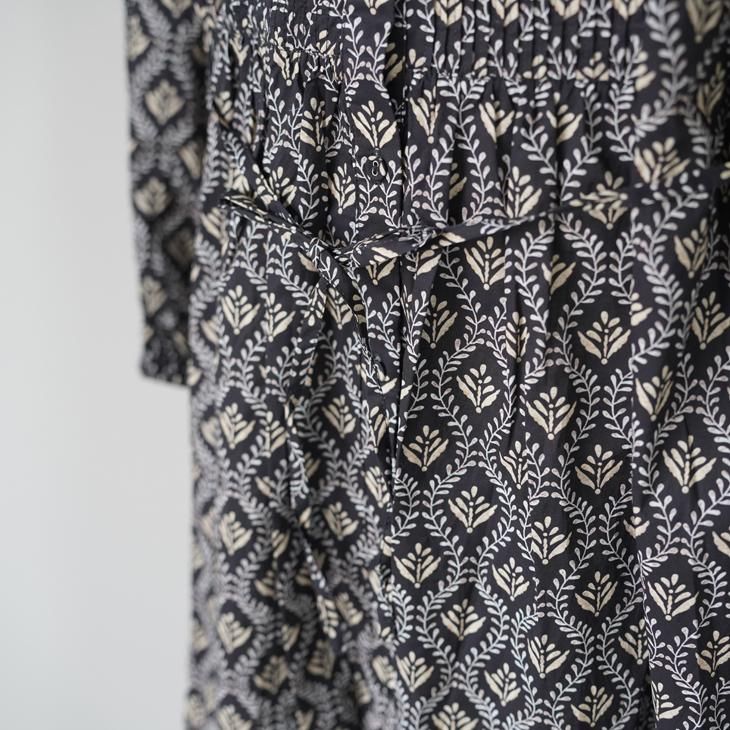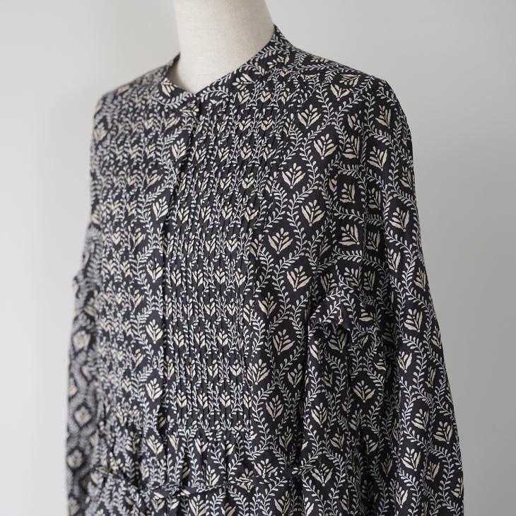 sosotto (ソソット) | ツタ柄細ピンタックウエストドロストOP (charcoal) | ワンピース チャコール 長袖