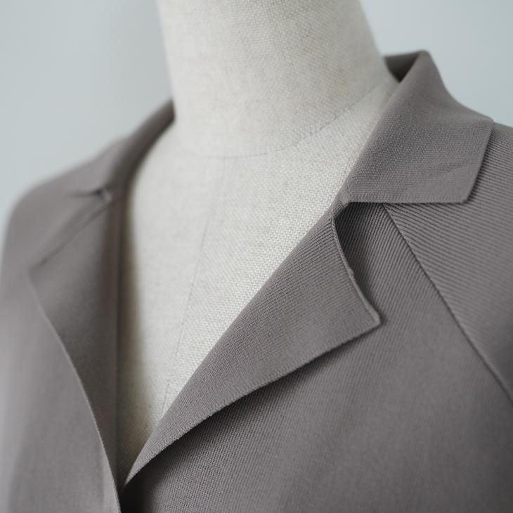 ポリエステルの糸を使用してミラノリブで編みたてたジャケット。