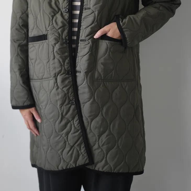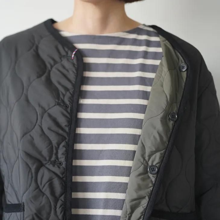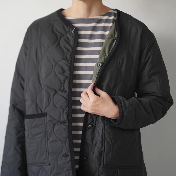 【再入荷】Pont de Chalons (ポンデシャロン) | 洗えるキルティングリバーシブルコート (ブラックxカーキ) | ライトアウター
