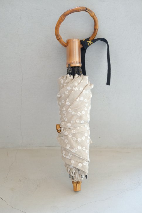 SUR MER (シュルメール) | 麻刺繍 輪っか水玉 折りたたみ日傘 (natural)