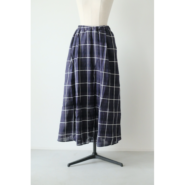 NARU (ナル) | シャドウチェック フレアスカート (navy)