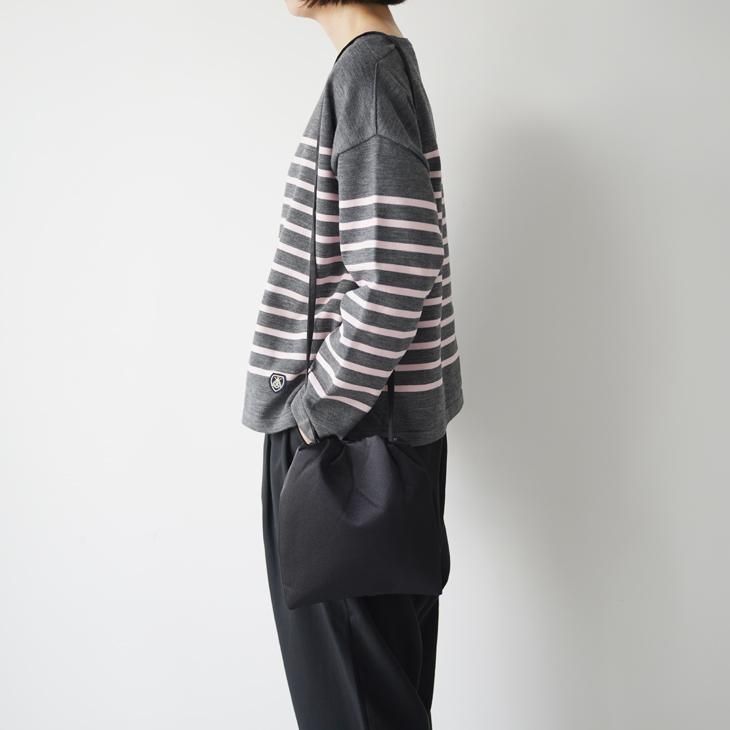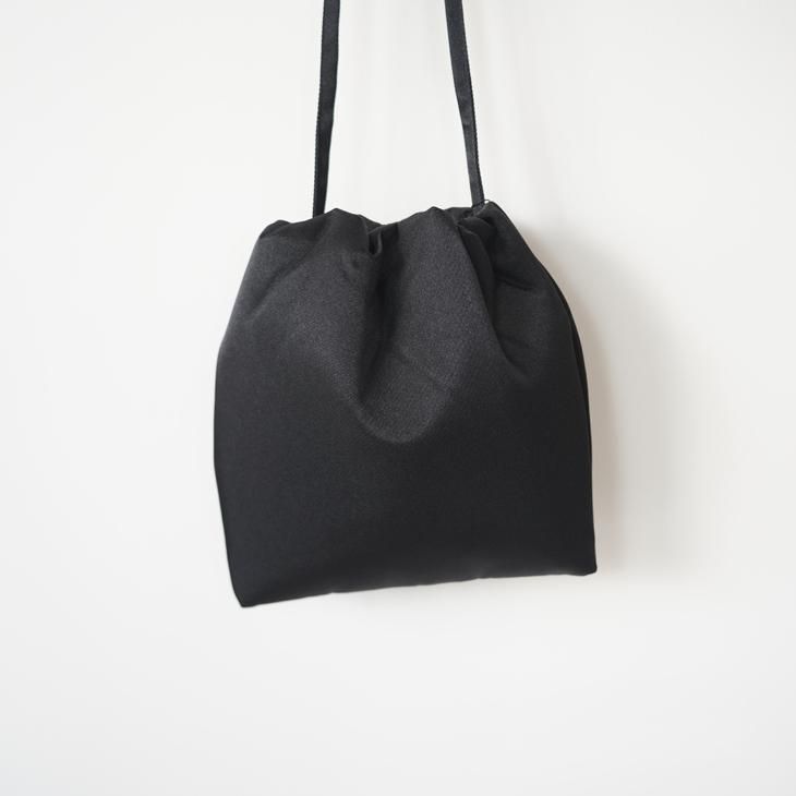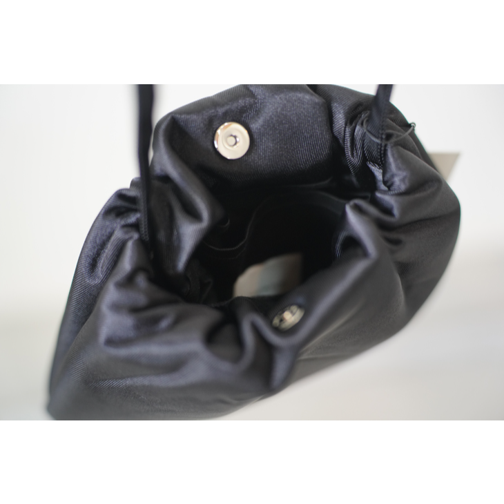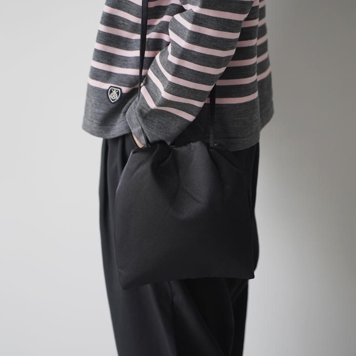 ウレタンをボンディングし、ふんわり感を出した艶やかなナイロンツイルで作った小ぶりなショルダーバッグ。
